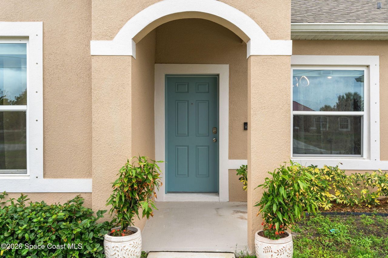 Built in 2023, this beautiful upgraded Clearwater model sits on a spacious quarter acre city water lot in Bayside Lakes of Palm Bay. The open concept design creates a bright and inviting space with a large great room that flows into a stylish kitchen featuring granite countertops, a large prep island, sleek cabinetry, and upgraded LG and Whirlpool appliances including an induction stovetop with air fryer convection oven. This home stands out with luxury vinyl flooring throughout with no carpet, Low E storm windows with remote window shades, and all LED lighting. Additional upgrades include a 50 amp exterior outlet, LED air duct lights, extra electrical boxes and ceiling lights in the garage, plexiglass covered shelving, and new cabinet hardware throughout. The split bedroom layout offers privacy with a relaxing owners suite, walk in closet, and spa inspired bath. Enjoy the screened lanai overlooking a canal with no future rear neighbors. Concrete block construction and storm shutters.