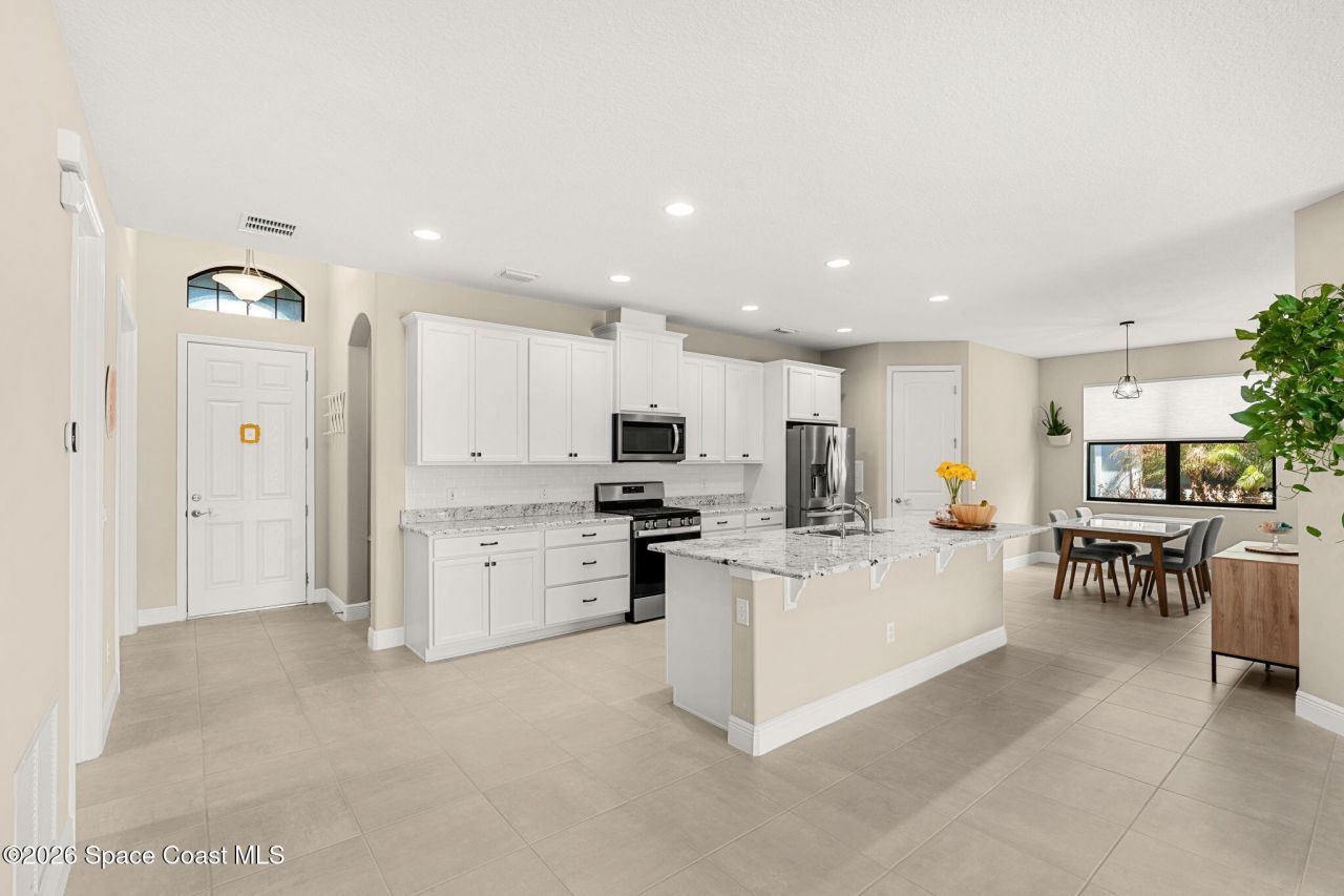 Exceptional 4BR/3BA + OFFICE home in the highly desirable Addison Village area of Viera. Thoughtfully designed with an open floor plan, this home offers both spacious living and effortless flow for entertaining. A rare second primary suite provides flexibility for guests or multi-generational living. Step outside to your private backyard retreat featuring a screened heated saltwater pool, perfect for enjoying Florida living year-round. Positioned on one of the best lots in the neighborhood, the property offers a standout waterfront view and an ideal lot layout that creates both privacy and openness. This home also features a water softener, reverse RO system, garage storage, 220V golf cart charging, and is pre-wired for home theater and security systems. Located close to top-rated schools, shopping, dining, and the incredible amenities Viera is known for, this home combines comfort, location, and lifestyle in one beautiful package.