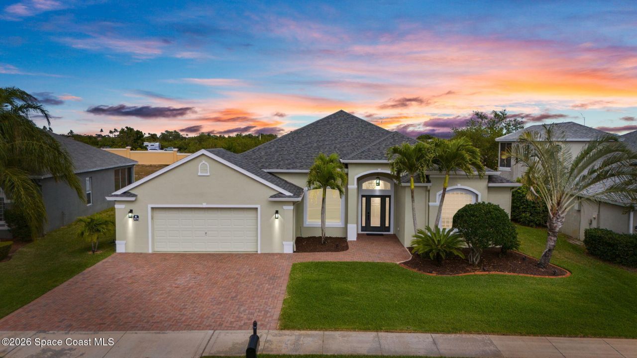 Welcome to this exceptional residence in the highly sought after gated Sonoma Subdivision in Viera, featuring a fully fenced backyard with green space and a resort style pool and spa, perfect for relaxing or entertaining. This meticulously maintained 4 bedroom, 3 bath pool home offers timeless design with modern upgrades throughout.Expansive living areas showcase large format porcelain plank tile flooring and abundant natural light from energy efficient windows. Plantation shutters and designer lighting, including statement chandeliers, add a sophisticated touch.The gourmet kitchen is beautifully appointed with white and gray marble inspired quartz countertops, premium KitchenAid stainless steel appliances, and 42 inch custom cabinetry. A kitchen sink water filtration system adds everyday convenience. The breakfast bar and eat in nook overlook the pool, creating a seamless indoor outdoor living experience.Modern enhancements include a smart thermostat with Alexa compatibility, an EV outlet in the garage, surround sound speakers in the living room, and updated interior door hardware and electrical outlets throughout. A new laundry sink in the garage adds functionality, while the outdoor TV and pool cleaner robot convey.Major updates include a roof 8 years, an 80 gallon Rheem water heater 4 years, and an AC system 10 years.Located in one of Vieras most desirable gated communities, close to top rated schools, shopping, and dining.