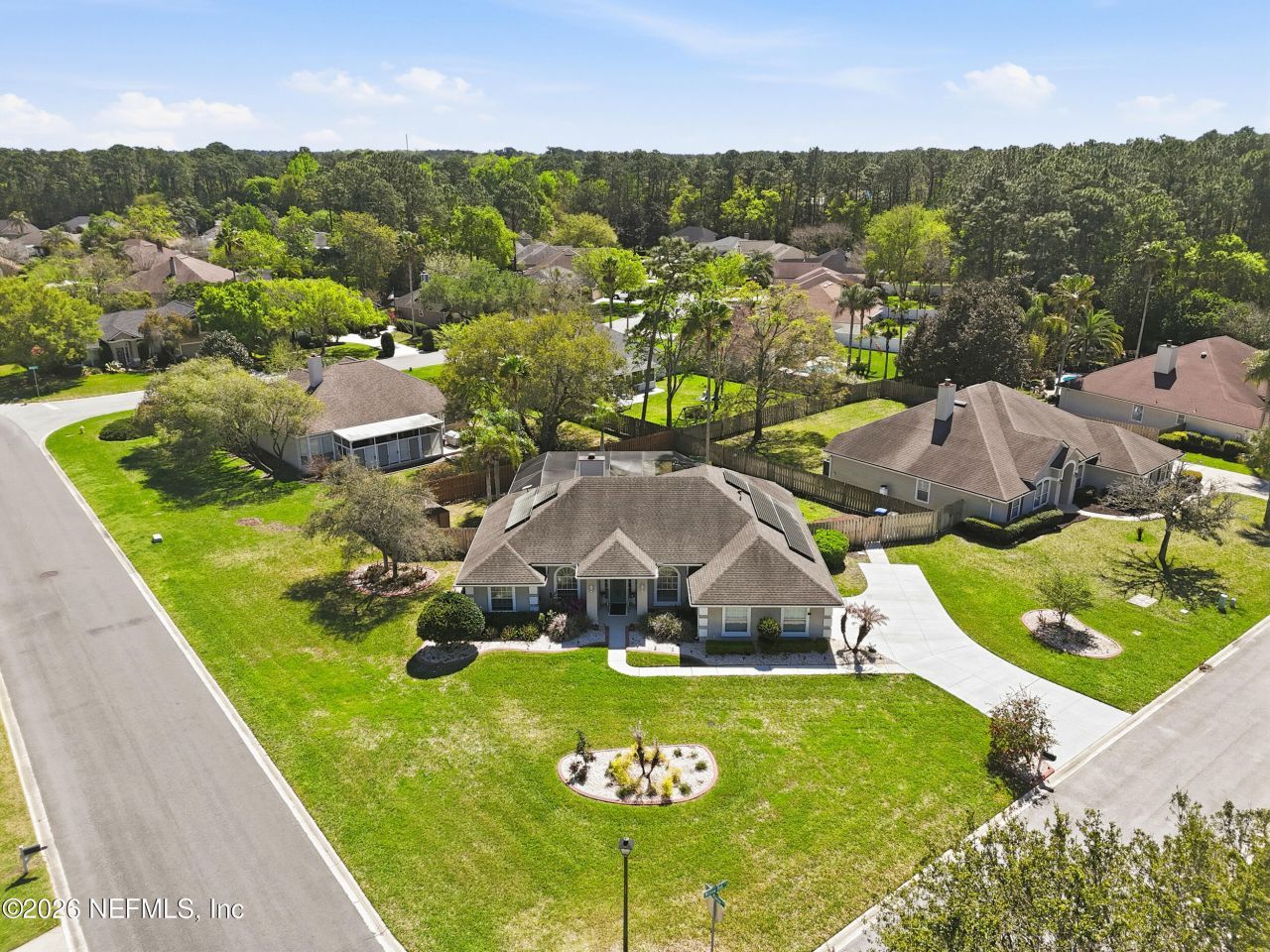Don't miss this beautifully maintained 4-bedroom, 2-bath pool home in the highly desirable Julington Creek Plantation community. Designed for both comfort and entertaining, this home features an open floor plan with 10-foot ceilings accented by elegant crown molding, creating a bright and spacious feel throughout.The kitchen is a chef's delight, offering granite countertops, stainless steel appliances, recessed lighting, and under-cabinet lighting, perfect for everyday living and hosting guests.Relax in the spacious primary suite, complete with a luxurious travertine-tiled bathroom featuring a Jacuzzi soaking tub, walk-in shower with body sprayers, and dual vanities.Step outside through large outward-opening French doors to a screen-enclosed pool, creating a seamless indoor-outdoor living space ideal for entertaining and enjoying Florida's cooler months.This home also features energy-saving solar panels to help reduce utility costs, along with modern conveniences including a Nest thermostat and a 50-AMP generator outlet for added peace of mind. Upgrades includes a newer driveway and high end Moen fixtures.St Johns county schools. Elementary and Middle school within walking/Biking distanceLocated in Julington Creek Plantation, residents enjoy access to top-rated schools, parks, golf, shopping, dining, and resort-style community amenities.