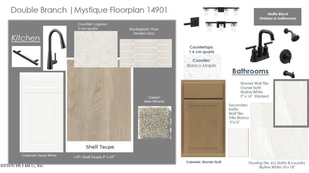 Step into the beloved Mystique home, where timeless Traditional style meets modern comfort and thoughtful design. This beautifully crafted residence offers 4 bedrooms, 3 full bathrooms, and an extended 2-car garage designed to support both convenience and everyday living with ease. The truly impressive upgraded kitchen features a brand-new Whirlpool appliance package, including a refrigerator, elegant quartz countertops, 42-inch white soft-close cabinetry, a sophisticated Flow Tender Gray tile backsplash, and an expansive island. Luxury vinyl plank flooring flows throughout the main living areas, enhancing the seamless connection between the extended gathering room--highlighted by a tray ceiling--and the inviting covered lanai. Thoughtful upgrades can be found at every turn, including 8-foot interior doors, integrated smart home technology, stylish upgraded hardware finishes, and included blinds, all adding both comfort and convenience. This exceptional home is truly move-in ready!