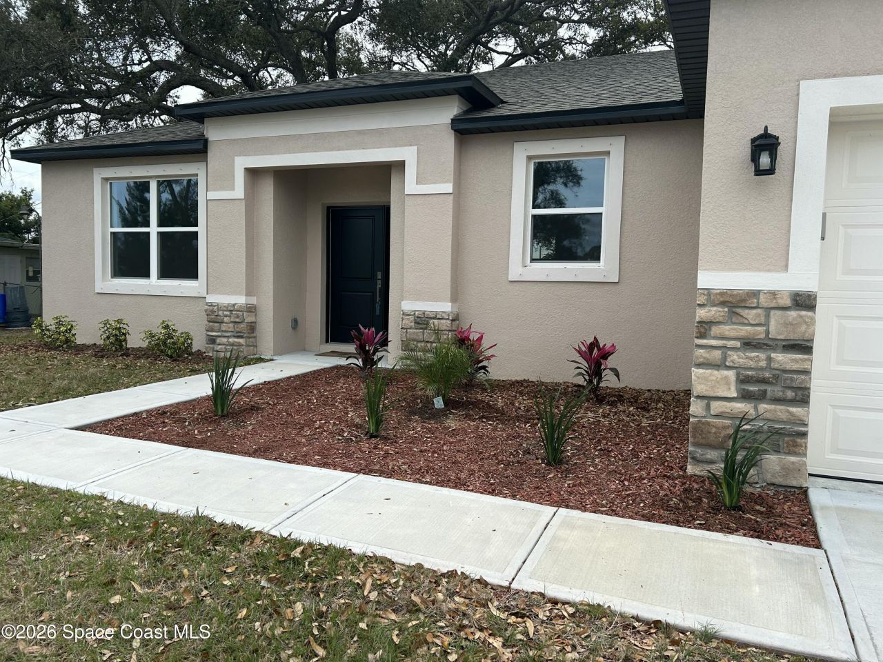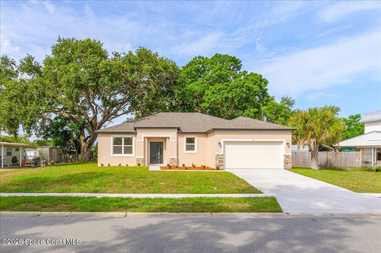 FLEX $$ available for qualified buyers. NEW custom-built home w/city water & sewer, set on a quiet street in an established NE Palm Bay neighborhood with a peaceful, park-like setting. The bright, open layout includes a flex room--ideal for office or dining--and a stylish kitchen w/soft-touch cabinetry, granite counters & center island overlooking the family room, creating a natural space for everyday living or entertaining. Owners suite features a large walk-in closet & spacious step-in shower. Enjoy Florida living on the covered back porch shaded by established greenery. Luxury flooring, tray ceilings, inside laundry & hurricane shutters add comfort & style. Just steps to the park, playground, tennis courts & picnic areas, and minutes to riverfront boat ramps & downtown Melbourne. If youve been waiting for the right mix of new construction and a settled neighborhood feel, this is worth seeing in person--schedule your showing today.